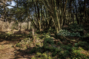 제주도를 여행하다 보면 용암이 굳어 만들어진 바위 더미로 이루어진 기묘한 숲 ‘곶자왈’을 만나곤 한다. 제주 말로 ‘곶’은 숲, ‘자왈’은 가시덤불을 뜻하니, 곶자왈은 가시덤불 숲이라는 의미다. 화산 분출 때 흘러내려 굳은 용암이 만든 크고 작은 돌 덩어리와 나무, 덩굴이 마구 엉켜 있어서 생김새는 산만하고 어수선하다. 이 숲은 주로 한라산 동서쪽 계곡에 군데군데 분포한다. 경사가 가팔라 물살이 빠른 남북 계곡과 달리, 동서 사면은 완만한 까닭이다. 곶자왈은 제주의 삶과 애환이 고스란히 배어 있는 공간이다. 그래서 이와 관련된 제주