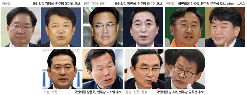 4년 전 치러진 21대 총선에서 3%포인트 미만의 득표수 차이로 승패가 갈린 곳은 전국적으로 19개 지역구였다. 서울 2곳(광진을, 용산), 경기 5곳(남양주병, 성남분당갑, 성남분당을, 평택갑, 평택을), 인천 1곳(중·강화·옹진), 부산 3곳(남을, 북·강서갑, 사하갑), 대전 1곳(중구), 충북 1곳(증평·진천·음성), 충남 4곳(공주·부여·청양, 보령·서천, 아산갑, 천안갑), 경남 2곳(창원진해, 양산을) 등이다. 아슬아슬한 표 차이를 보였던, 그야말로 혈투가 벌어진 최대 승부처들이었다.