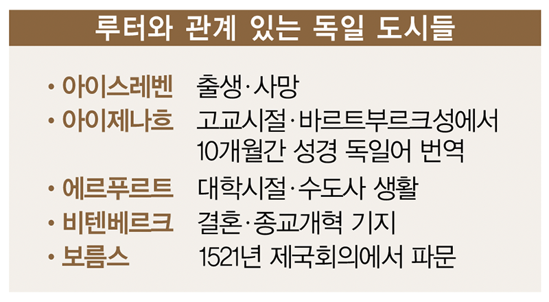 비텐베르크는 루터가 1512년 비텐베르크 대학의 교수이자 사제로 부임하면서 살기 시작했고, 1517년 종교개혁을 시작한 뒤 다소의 우여곡절을 겪다가, 1525년 결혼하여 가정을 꾸린 뒤 1546년 죽기까지 살았던 곳이다.