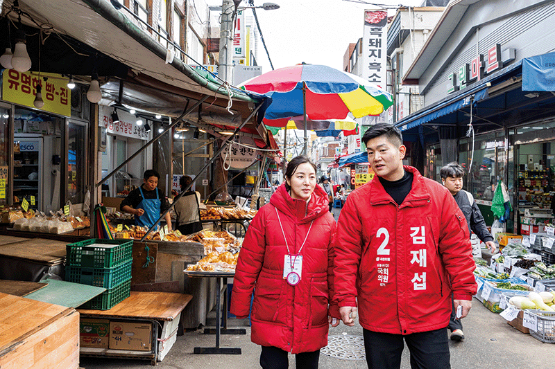 한 70대 유권자 부부는 창동역 퇴근길 인사에서 “손자가 보여줬어”라며 나와 찍은 사진을 보여주셨다. “내 손주가 중2인데, 학교 부회장으로 출마할 때 길에서 만난 김재섭에게 조언을 받았다대. 우리야 원래 국힘 지지자지만, 애 아빠는 민주당 당원이고 애 엄마는 중도층인데…. 애 엄마는 거의 국힘 쪽으로 마음이 기운 것 같어.” 이 뿌듯한 이야기를 전해듣는 순간, 아이들로부터 받는 지지가 40·50대 표심에 영향을 미치는 것을 실감했다.